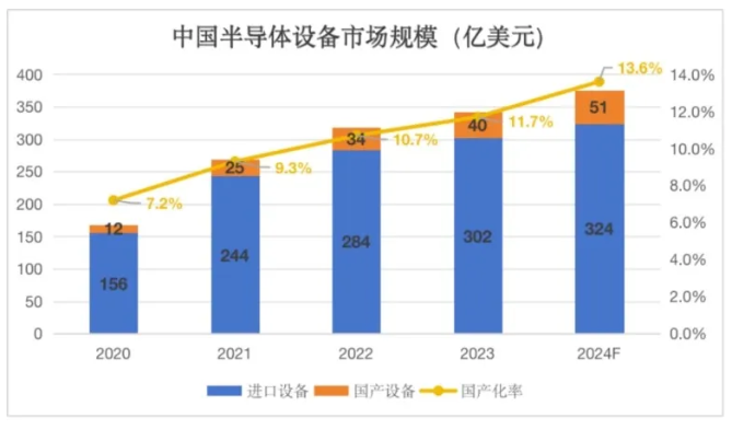 根據相關行業數據,預計2024年中國的半導體設備國產化率達13.6%,產值超過50億美元。